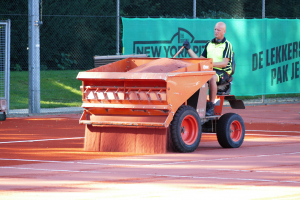 Dit laatste is inderdaad het geval. Het heeft nog even tijd nodig voor het zand helemaal goed inzakt. Het is daarom belangrijk dat we na elke keer spelen de baan vegen. Dit laatste hebben we jaren niet gedaan, maar het is belangrijk dat we deze routine weer oppakken. Vanaf nu moet er dus naar elke keer spelen op de Smash Court banen weer geveegd worden!