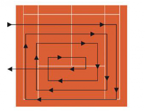 · De banen moeten cirkelvormig gesleept worden (zie afbeelding), hierbij moeten de cirkels elkaar half overlappen tijdens het slepen.