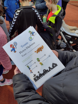 Woensdag 29 was het weer zover, Pepernoten Tennis! Zo’n 25 blauwe, rode en oranje spelers hadden ruim 15 vriendjes en vriendinnetjes uitgenodigd voor een gezellige middag. Door goed samen te werken, snel te zijn, rally’s te spelen en tennisballen te sorteren kon je een pieten diploma verdienen. En, er waren warempel twee echte pieten ingevlogen om de kinderen hierbij te helpen. Met warme chocomelk, ranja en pepernoten tussendoor hebben de kids een sportieve middag gehad, afgeslopen met een leuk cadeautje met speciaal gedicht voor iedereen.
