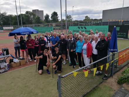 Rijpere tennissers, lekker eten en ’s avonds een sfeervolle afterparty. Midden juli waren dat de belangrijkste ingrediënten van het La Trappe Open Veteranen Dubbeltoermooi.