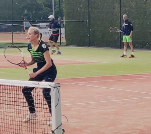 Ook het jeugdteam van Maaike staat op nummer 1! Waar Aimée het met 6-7 en 4-6 net niet redde wisten haar teamgenoten Maaike, Sam en Jasper wel raad met de bezoekers uit Veenendaal. In totaal is de gamestand na deze 4 partijen 46 – 15. Hierna worden de dubbels ook overtuigend gewonnen en is weer een overtuigende overwinning een feit: 5-1. Misschien wordt het kampioenschap volgende week tegen VTC al veilig gesteld, SUCCES!